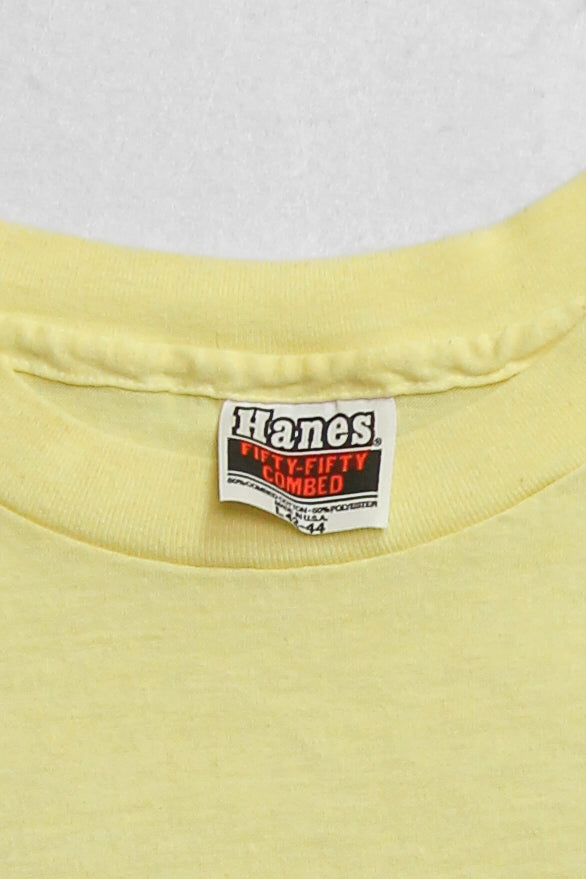 Retro HANES tee with single stitching and made in USA.